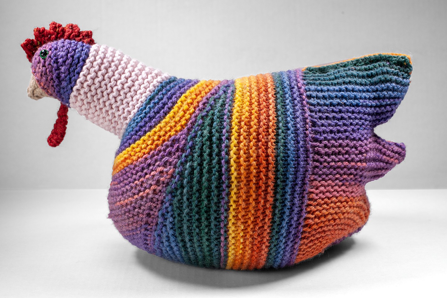 Emotional support chickens are just… little knitted chicken shaped pillows to hug. They are also symbols of love and support when you need those things desperately. They are something to cling to in bad times. Sometimes they are all a knitter can do for another person in need, and sometimes they are just what that person needed.