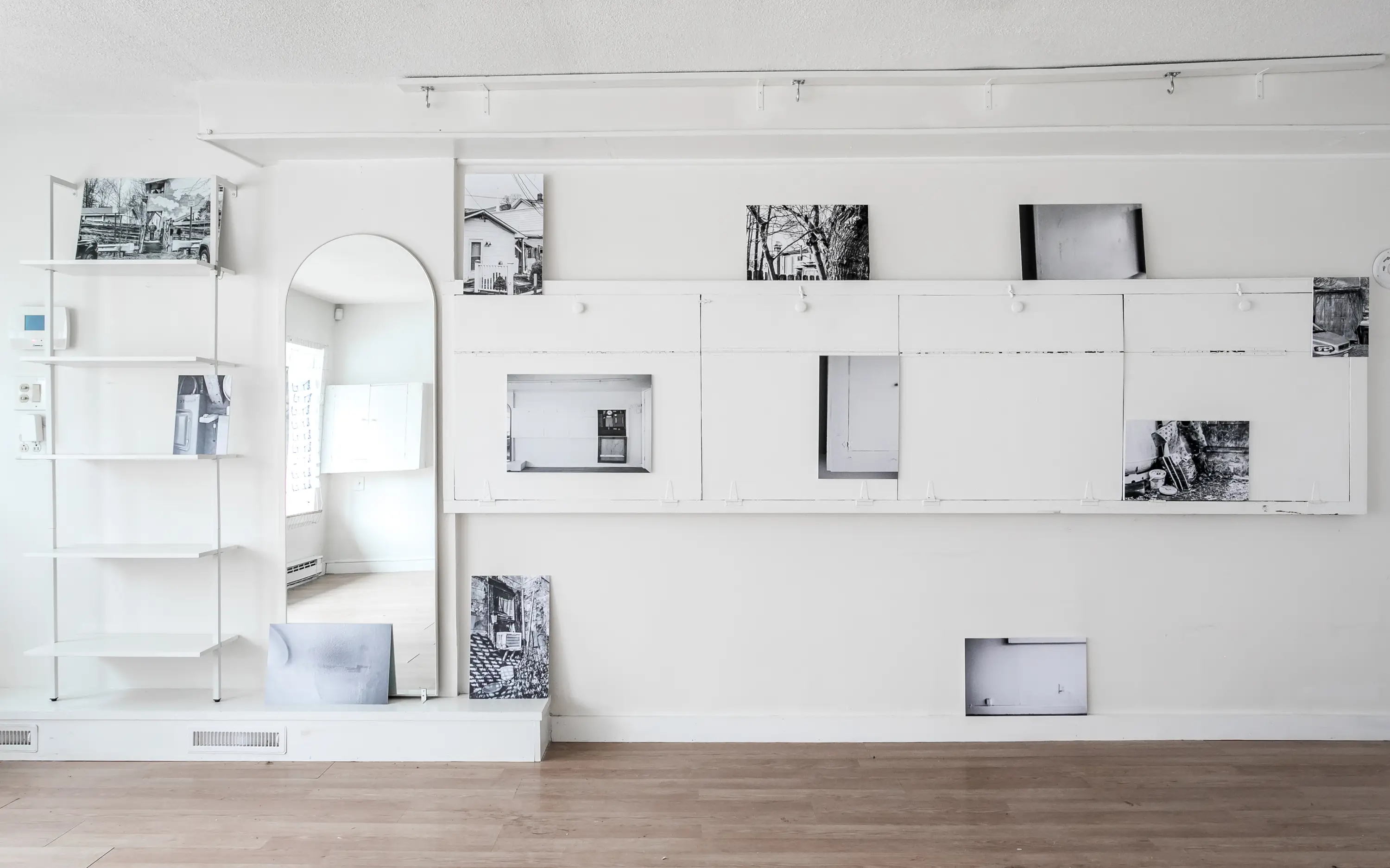 This inaugural exhibition at Shelter Upstate Studio in Woodstock invited three local lens-based artists who share an affinity for space to explore the surfaces that surround and shape us. Through printing, cutting, framing, and re-photographing, Sam Margevicius, Gabriel Zimmer, and Winona Barton-Ballentine observe the ways that the tangential details of our natural and man-made environments tell subcutaneous stories, which we read and respond to, often without knowing it.